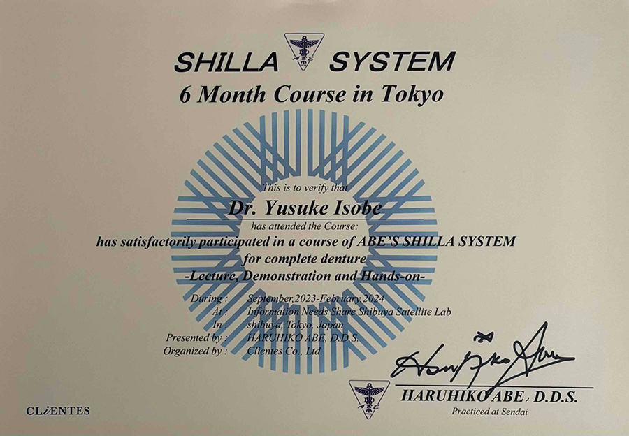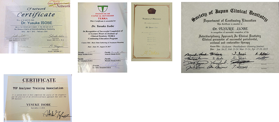 正確な診断を行うため、口腔内診査、画像診断、咬合評価に関する研修を受講しています。治療の前提となる診査・診断を重視し、適切な治療計画の立案に努めています。