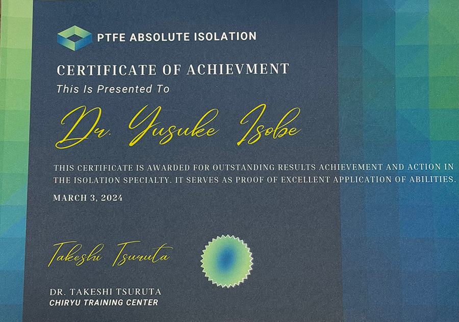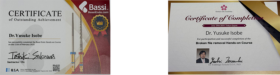 マイクロスコープや拡大視野を用いた精密治療に関する研修を受講しています。細部まで確認しながら、可能な限り歯を残す治療を心がけています。