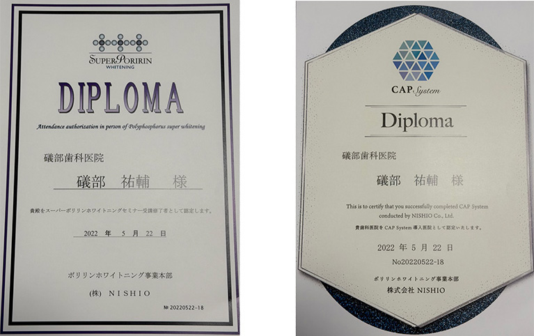 ホワイトニング治療に関する基礎知識、薬剤の特性、注意点について研修を受講しています。安全性に配慮し、治療内容を説明した上で施術を行っています。