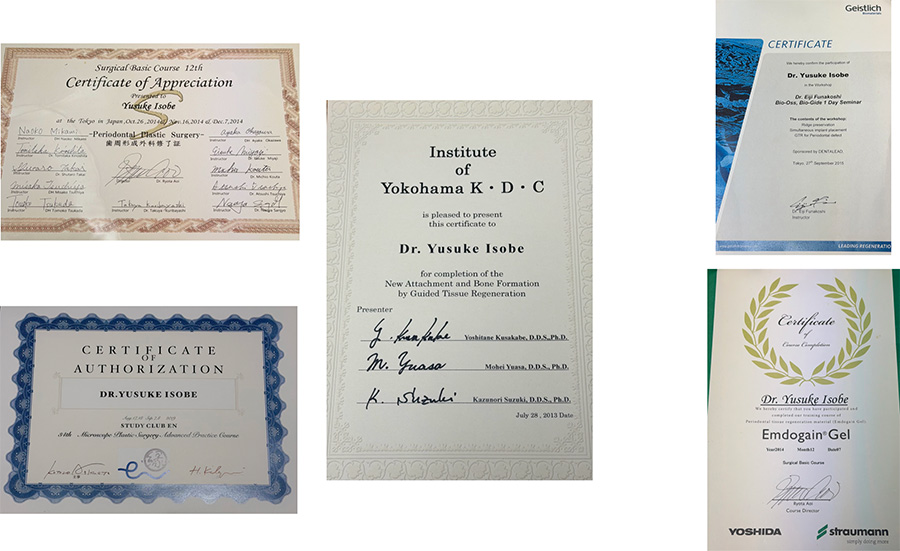 歯周病の検査・診断、基本治療、メインテナンスに関する研修を受講しています。歯周組織の状態を正確に把握し、長期的な口腔環境の維持を目指しています。